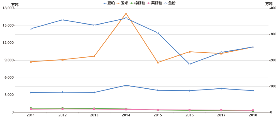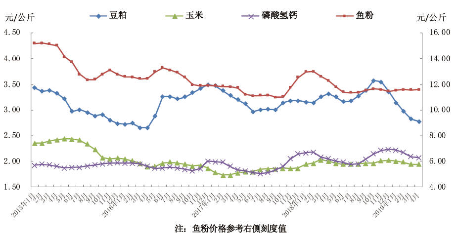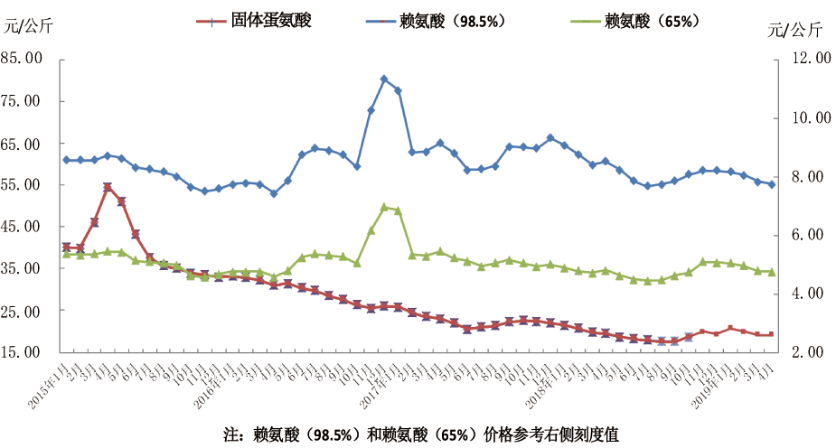 賴氨酸、蛋氨酸月度采購均價走勢圖