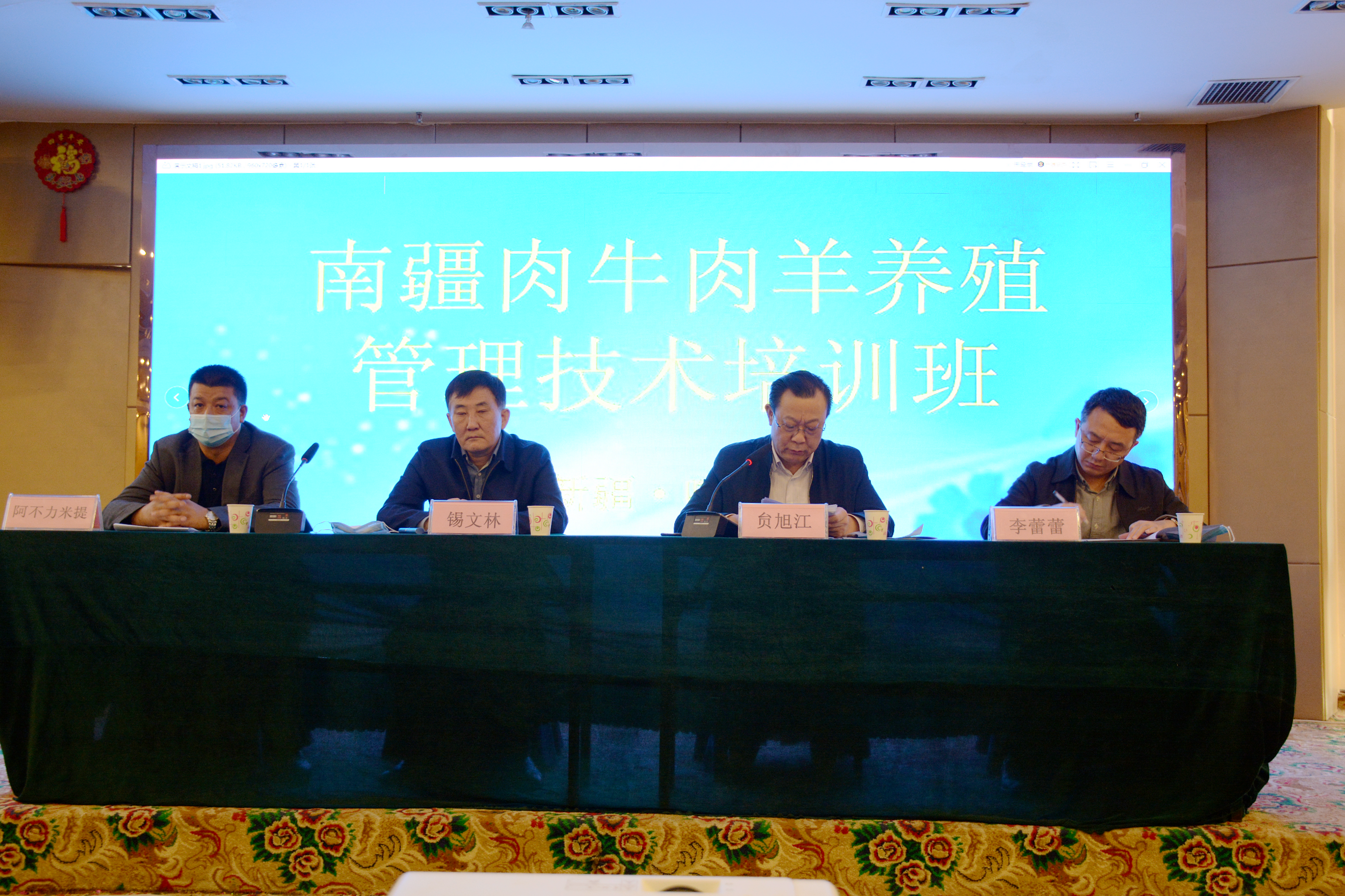 為貫徹落實《農業農村部扶貧開發工作領導小組關于印發2020年產業扶貧、定點扶貧、“三區三州”等深度貧困地區農業扶貧實施方案的通知》《農業農村部辦公廳關于印發<2020年畜牧產業扶貧和援藏援疆行動方案>的通知》工作部署,推動南疆特色畜牧業高質量發展,助力當地打贏脫貧攻堅戰。10月21~22日,全國畜牧總站、中國飼料工業協會在新疆維吾爾自治區喀什市舉辦了南疆肉牛肉羊養殖管理技術培訓班。全國畜牧總站副站長、中國飼料工業協會副秘書長贠旭江,全國畜牧總站體系建設與推廣處處長李蕾蕾,新疆維吾爾自治區畜牧總站副站長錫文林,新疆維吾爾自治區喀什地區畜牧獸醫局副局長阿布力米提以及來自新疆喀什地區與和田市各縣(區)畜牧技術推廣人員、養殖企業代表等共60余人參加了培訓班的開班典禮。開班典禮由全國畜牧總站體系建設與推廣處處長李蕾蕾主持。