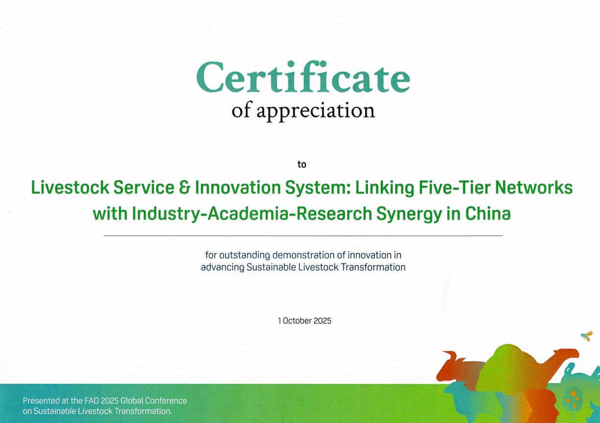 我國以技術推廣賦能畜牧業(yè)綠色轉(zhuǎn)型的實踐,精準契合大會 “聚焦行動、推廣創(chuàng)新方案” 的核心目標,相關實踐經(jīng)驗獲得國際同行的廣泛關注,得到了聯(lián)合國糧農(nóng)組織的充分認可,并被表彰為“推動可持續(xù)畜牧業(yè)轉(zhuǎn)型創(chuàng)新實踐的卓越典范”,為全球畜牧業(yè)可持續(xù)轉(zhuǎn)型貢獻了中國經(jīng)驗,提供了可借鑒的中國方案。