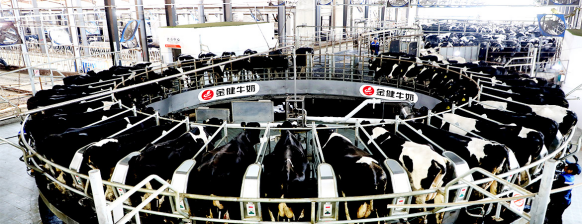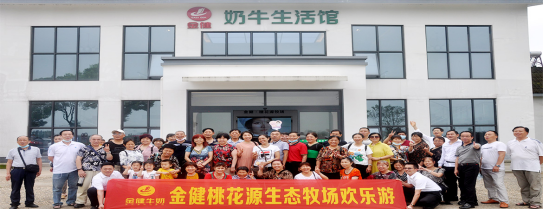 桃花源牧場是湖南金健乳業股份有限公司斥資3000多萬元精心打造的以洞庭湖風情為主題的休閑觀光牧場。牧場位于山清水秀的湖南省常德市漢壽縣聶家橋鄉武峰村,占地約500畝,秉承“好空氣、好水源、好牧草、好設備、好鮮奶”的理念,采用了現代化、智能化設施設備和信息化的管理系統;飼養管理實現了生產規范化、防疫制度化、監管常態化。目前存欄奶牛900多頭,年產奶量5500噸,乳脂率≥3.8%,乳蛋白率≥3.3%,菌落總數<5萬CFU/mL,體細胞數<30萬個/mL。牧場是國家學生飲用奶奶源基地,企業產品成為全國第十屆中學生運動會指定專用液態奶。