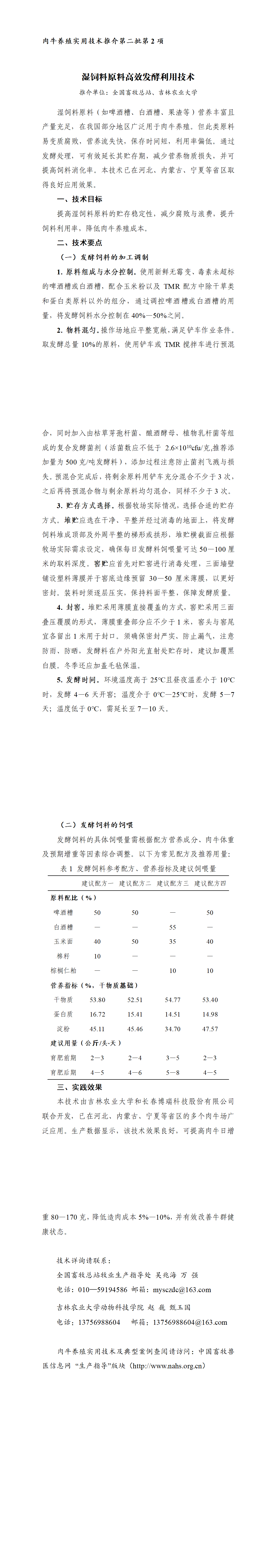 為貫徹落實《農(nóng)業(yè)農(nóng)村部關于實施養(yǎng)殖業(yè)節(jié)糧行動的意見》等有關部署要求,我站聯(lián)合山西農(nóng)業(yè)大學、吉林農(nóng)業(yè)大學等單位,就加工副產(chǎn)物等非常規(guī)飼料資源高效利用提煉實用技術2項,可有效提高肉牛飼料轉(zhuǎn)化率,促進肉牛養(yǎng)殖節(jié)本增效。現(xiàn)予發(fā)布。