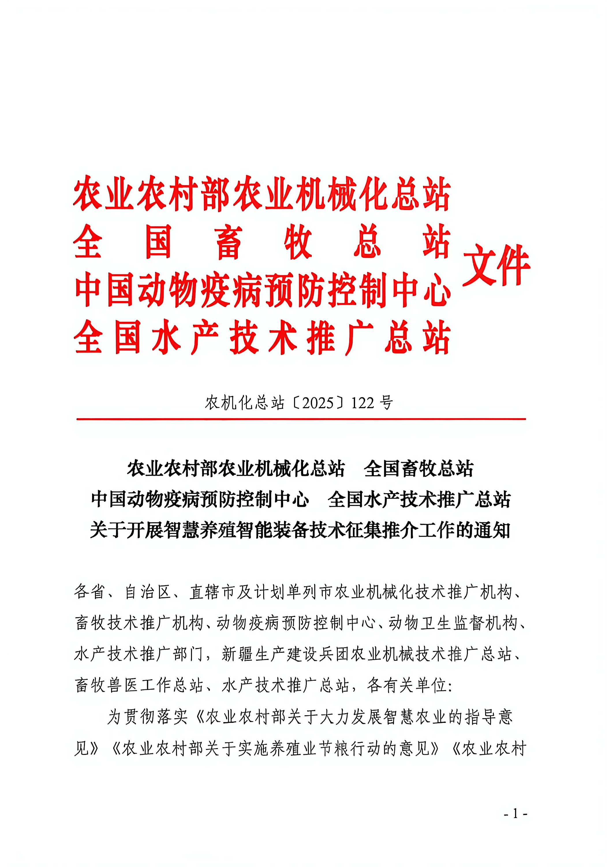 關(guān)于開(kāi)展智慧養(yǎng)殖智能裝備技術(shù)征集推介工作的通知