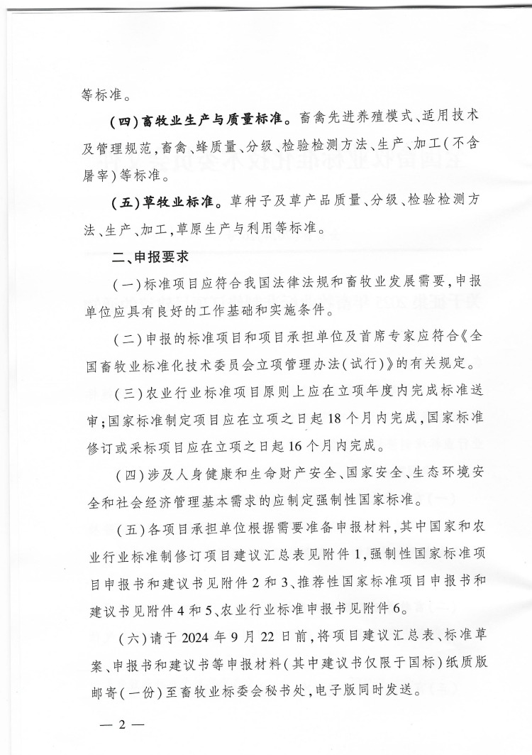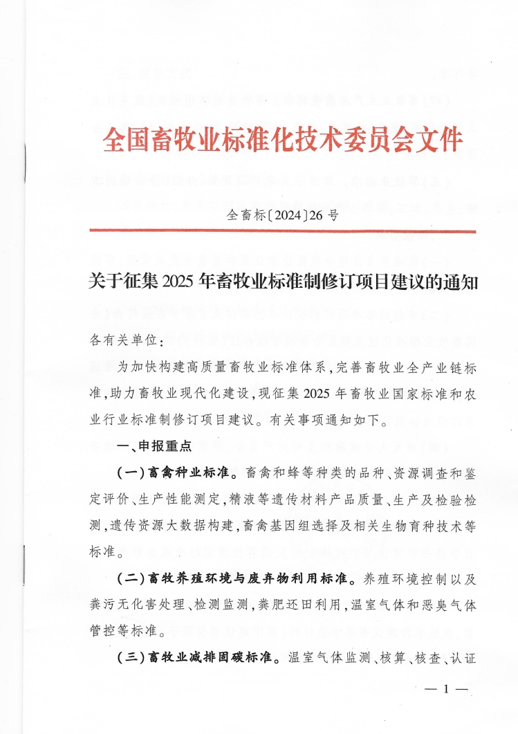 關(guān)于征集2025年畜牧業(yè)標準制修訂項目建議的通知