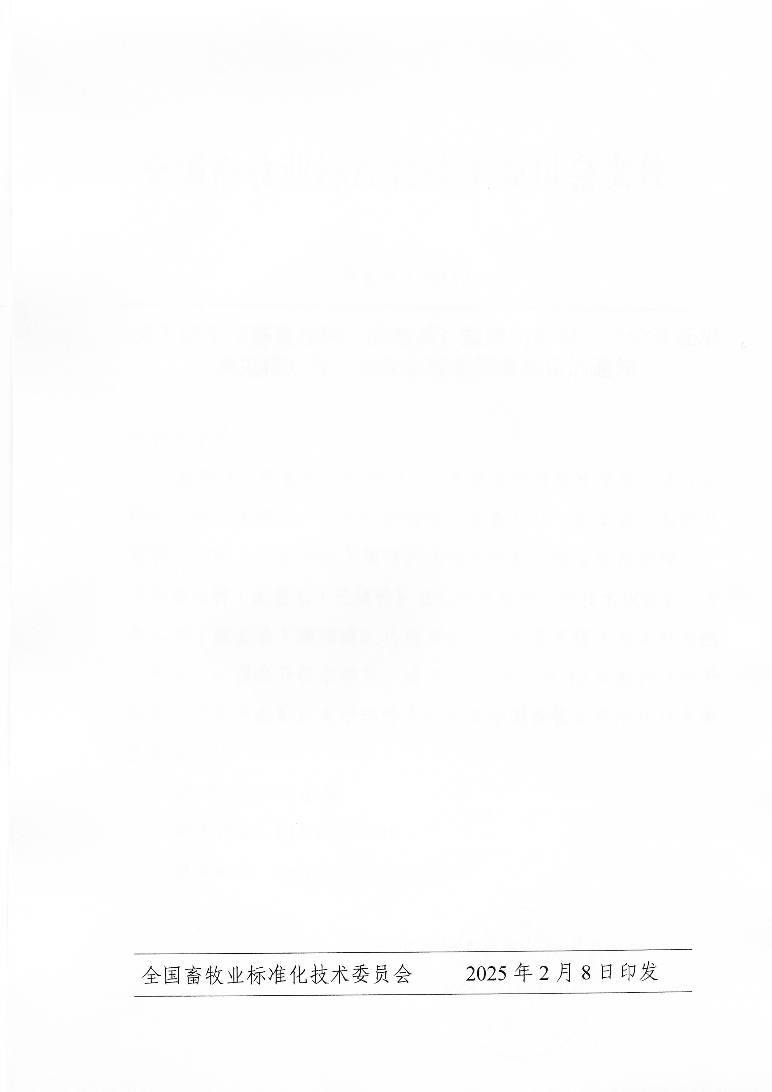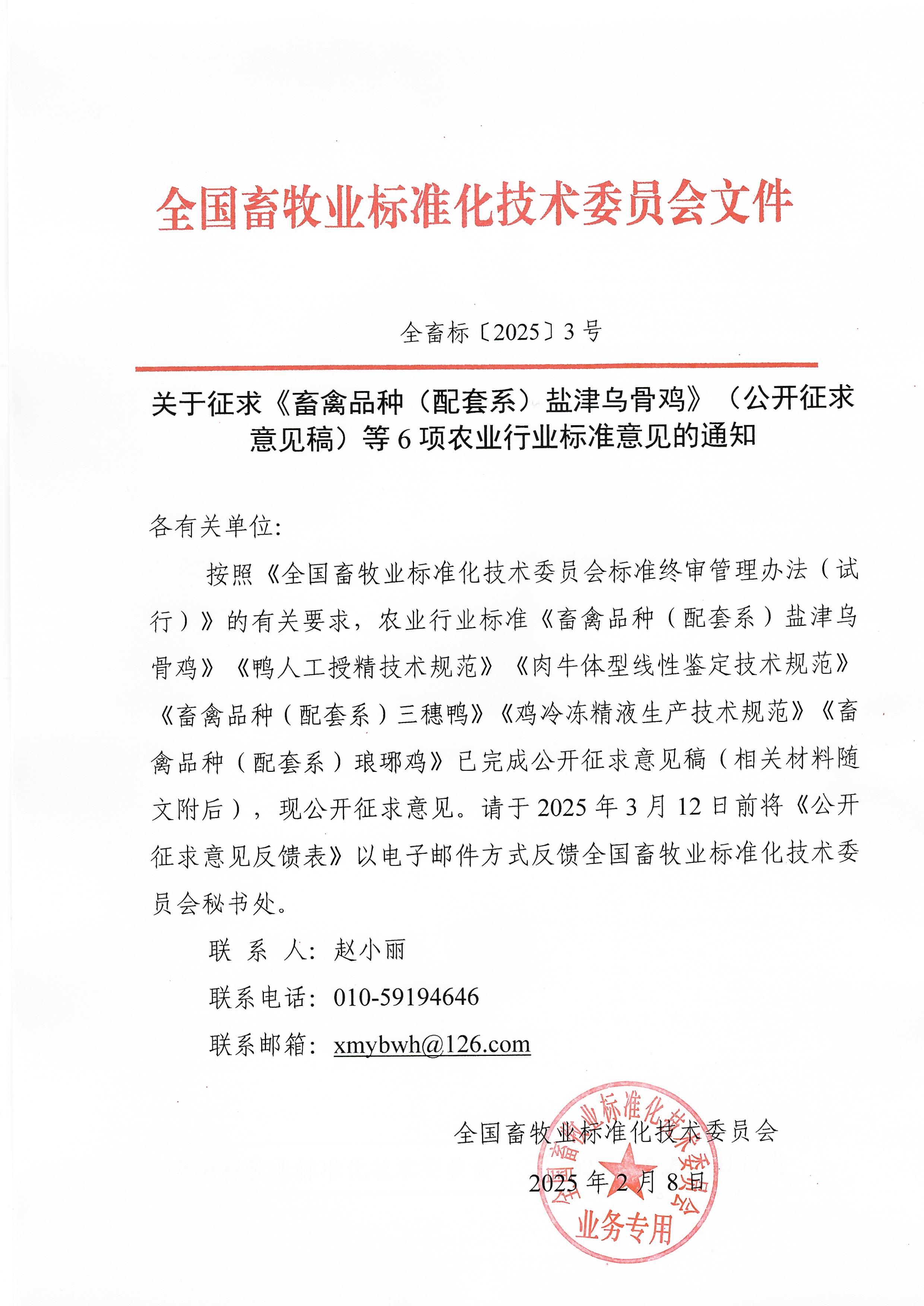 關于征求《畜禽品種(配套系)鹽津烏骨雞》(公開征求意見稿)等6項農業行業標準意見的通知