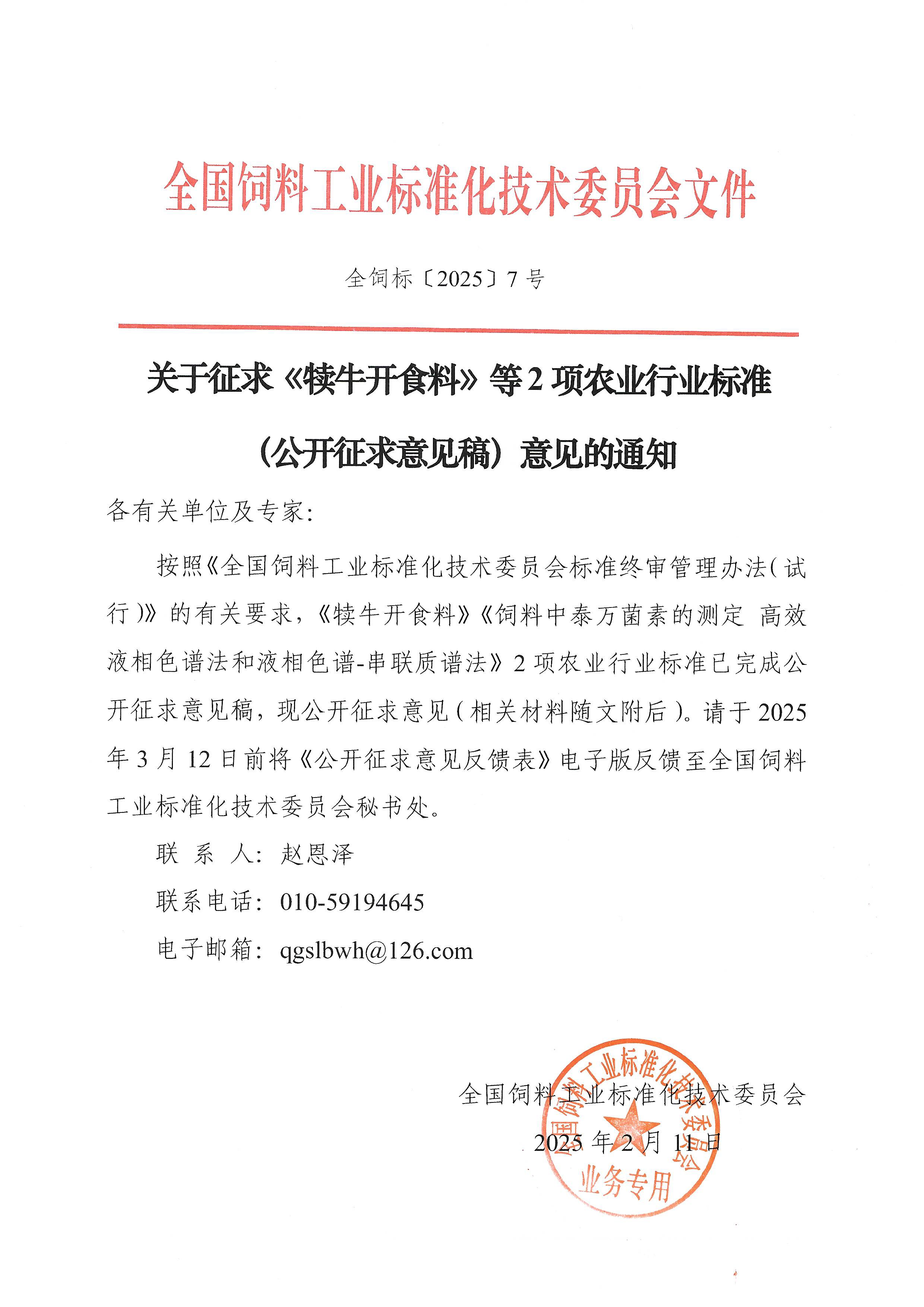 關于征求《犢牛開食料》等2項農業行業標準(公開征求意見稿)意見的通知