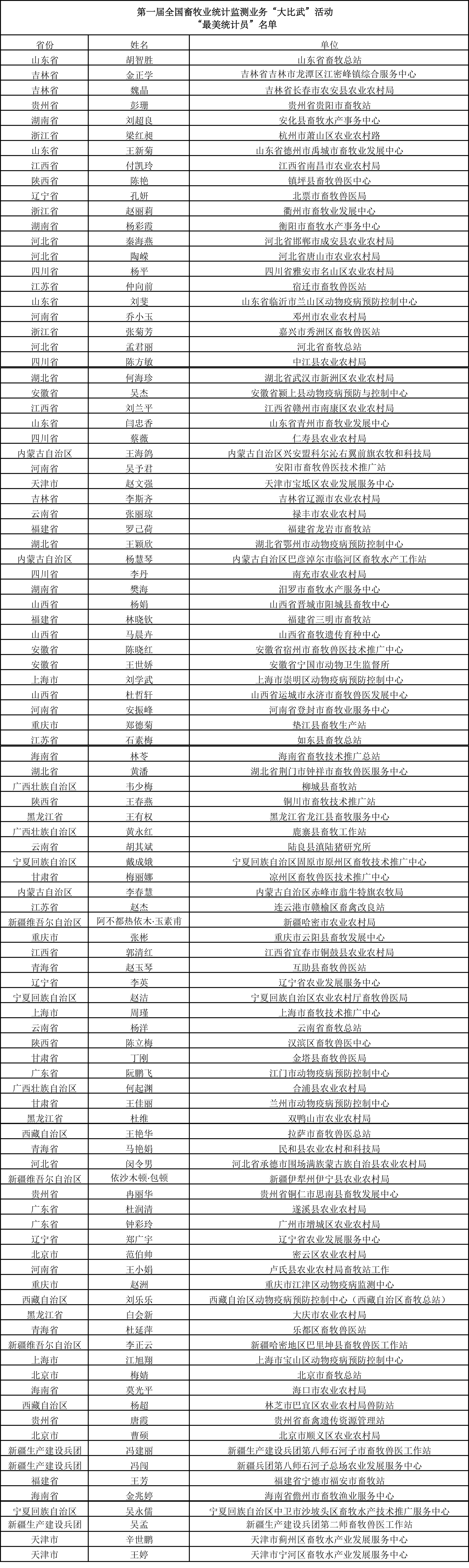 第一屆全國畜牧業統計監測業務“大比武”活動——“最美統計員”名單
